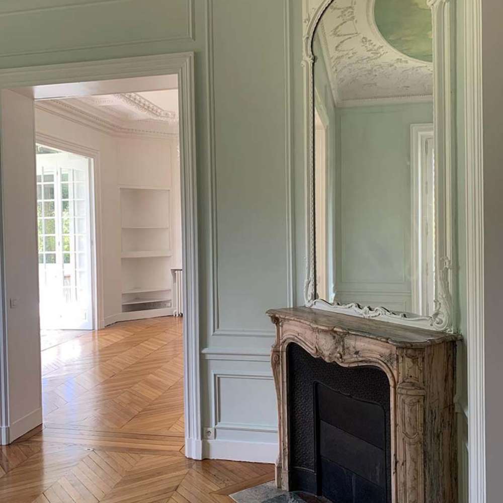 La restauration de cet appartement d'exception fut un véritable travail d'orfèvre. Notre mission a été de préserver l'authenticité des lieux tout en les adaptant aux standards de confort actuels. Nous avons mené une campagne de restauration des boiseries et des éléments décoratifs d'époque, en collaboration nos des artisans spécialisés. Parallèlement, nous avons intégré de manière discrète des éléments de confort moderne, assurant une parfaite mise aux normes complète des installations. Un projet emblématique de notre expertise dans la valorisation du patrimoine immobilier de prestige.