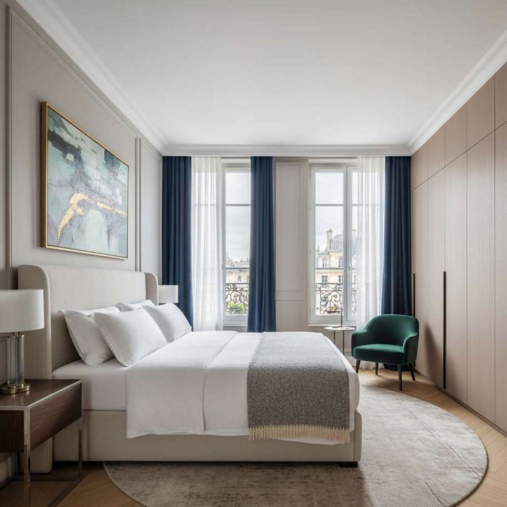 Ce projet d'architecture d'intérieur haut-de-gamme consistait à la restauration totale d'un appartement de caractère possédant de beaux volumes visant à redonner ses lettres de noblesses dans un style contemporain. Nous avons repensé la cuisine et les salles de bain, refait toute l'électricité et la plomberie, et restauré les parquets, moulures. L'ensemble du mobilier a été concus sur-mesure en interne par nos équipes. L'objectif était d'optimiser la luminosité et mettre en valeur les espaces, avec des matériaux nobles et des finitions haut de gamme, prouvant notre capacité en travaux tous corps d'état pour la mise en valeur du patrimoine