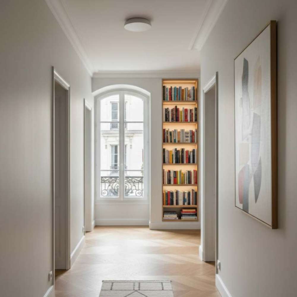 L'ensemble du mobilier a été concus sur-mesure en interne par nos équipes. L'objectif était d'optimiser la luminosité et mettre en valeur les espaces, avec des matériaux nobles et des finitions haut de gamme, prouvant notre capacité en travaux tous corps d'état pour la mise en valeur du patrimoine.