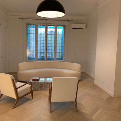 Ce projet audacieux a consisté en la transformation complète d'un appartement en un cabinet dentaire haut de gamme, idéalement situé rue Paradis. Notre approche architecturale a visé à créer un espace à la fois fonctionnel, apaisant et esthétiquement raffiné. Nous avons repensé la distribution des pièces pour intégrer des salles de soins ergonomiques, une salle d'attente accueillante et des zones techniques modernes. L'ensemble de l'électricité, de la plomberie et de la ventilation a été mis aux normes spécifiques du secteur médical. Du mobilier sur-mesure au choix des matériaux nobles (marbre blanc, bois clair, touches de laiton), chaque détail a été pensé pour offrir une expérience patient unique et un environnement de travail optimal pour les praticiens.